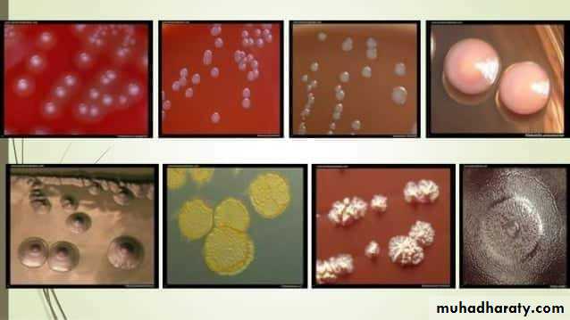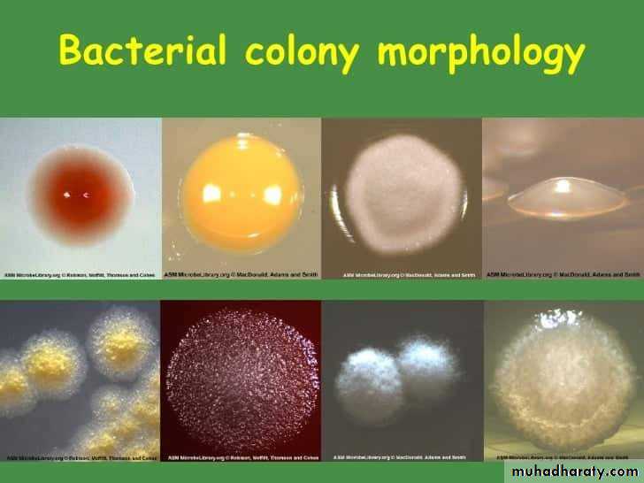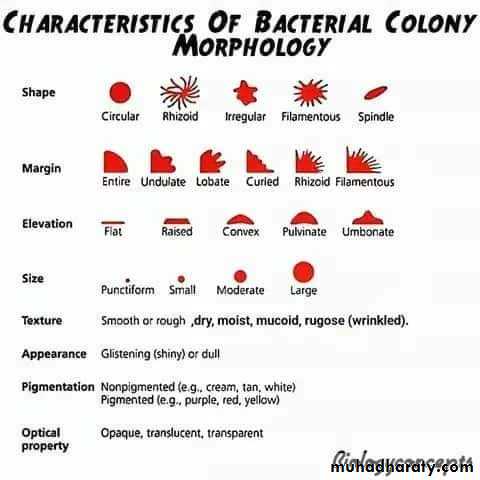 To study the macroscopic characteristics of a pure culture on a solid medium, the following points have to be considered in describing a colony :Size : measured in m.m.