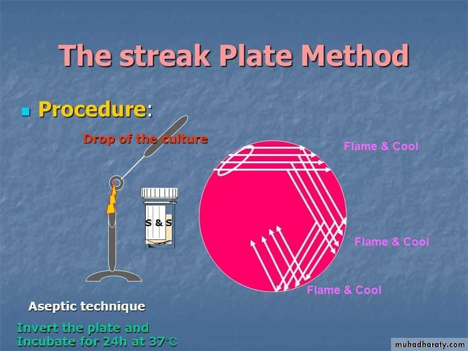 This method is employed for the isolation of pure culture of bacteria from mixed population, e.g., sputum, urine, stool, pus from infected wound and abscess.