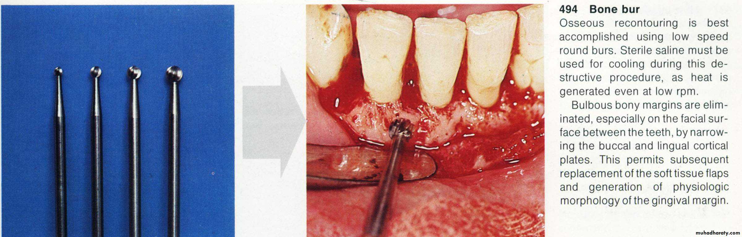 Note: osseous surgery should be always carried out under continuous irrigation with normal saline to avoid bone necrosis.