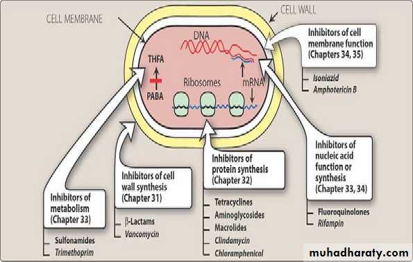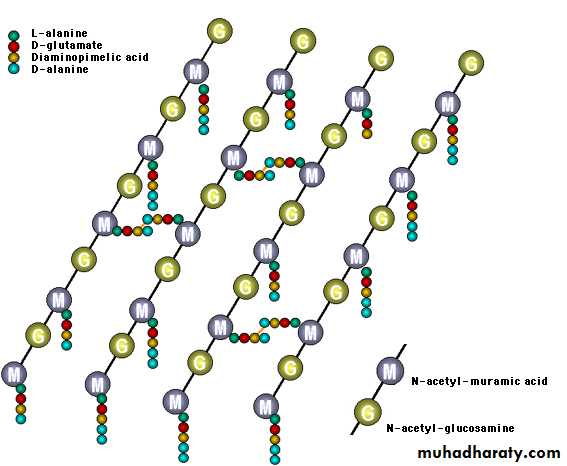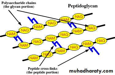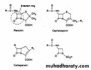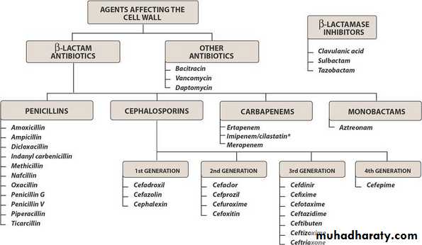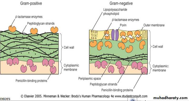 1- Inhibitors of bacterial Cell Wall Synthesis.Antibiotic selectively interfere with the synthesis of bacterial cell wall (a structure that mammalian cell do not possess ) the cell wall is a polymer called peptidoglycan that consist of glycan unit joint to each other by peptide cross –links and the designation of peptidoglycan cell wall to be maximally effective .