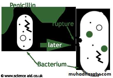 All resulting in exposure of the osmotically less stable membrane and cell lysis occur so it Bactericidal and only effective against rapidly growing organism that synthesis peptidoglycan cell wall .