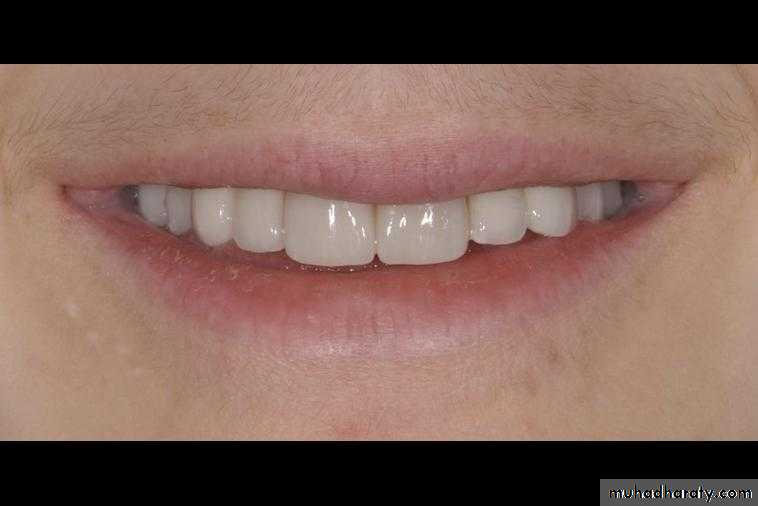 The amount of gingival exposure when smiling and the amount of upper incisor exposure under the upper lip in repose should be correlated. Ideally the upper lip vermillion should fall at the cervico- gingival margin with no more than 2 mm of gingival exposure during smiling.