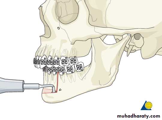In this technique, bone is removed in the area of an extraction site of a premolar or molar tooth, and the anterior dento-alveolar segment of the mandible is moved to a more posterior position. Although these procedures are rarely used, they are occasionally performed in cases with unusual arch forms in combination with edentulous spaces.