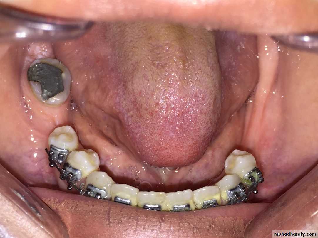 A complete dental examination should include assessment of dental arch form, symmetry, tooth alignment, and occlusal abnormalities in the transverse, anteroposterior, and vertical dimensions. The muscles of mastication and TMJ function should also be evaluated. A screening periodontal examination, including probing, should assess the patient's hygiene and current Periodontal health status.Radiographic evaluation: