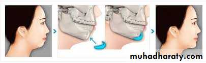 Dento-alveolar segment of mandible is moved anteriorly, allowing correction of Class II malocclusion without increasing chin prominence. When a proper occlusal relationship exists or when anterior positioning of the mandible would not be sufficient to produce adequate projection of the chin, an inferior border osteotomy (genioplasty) with advancement may also be performed.