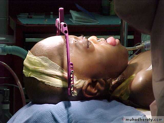 • It is indicated in the syndromic cranial synostosis patient with exorbitism, malocclusion, sleep apnea, midface retrusion, and severe dismorphism. Patient with orbito facial clefts are also candedates.• Also when performed in a growing child , it must be emphasized to the family that a second midface procedure will be required when the child completes craniofacial skeletal growth in late adolescence.