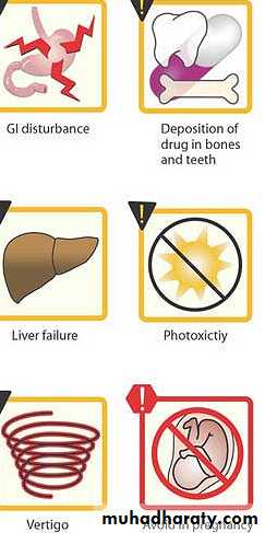 5. Hypersensitivity : -Rash, hives with itching,6. Photoxicity : darkening of skin & sunburn when patient exposed to sunlight