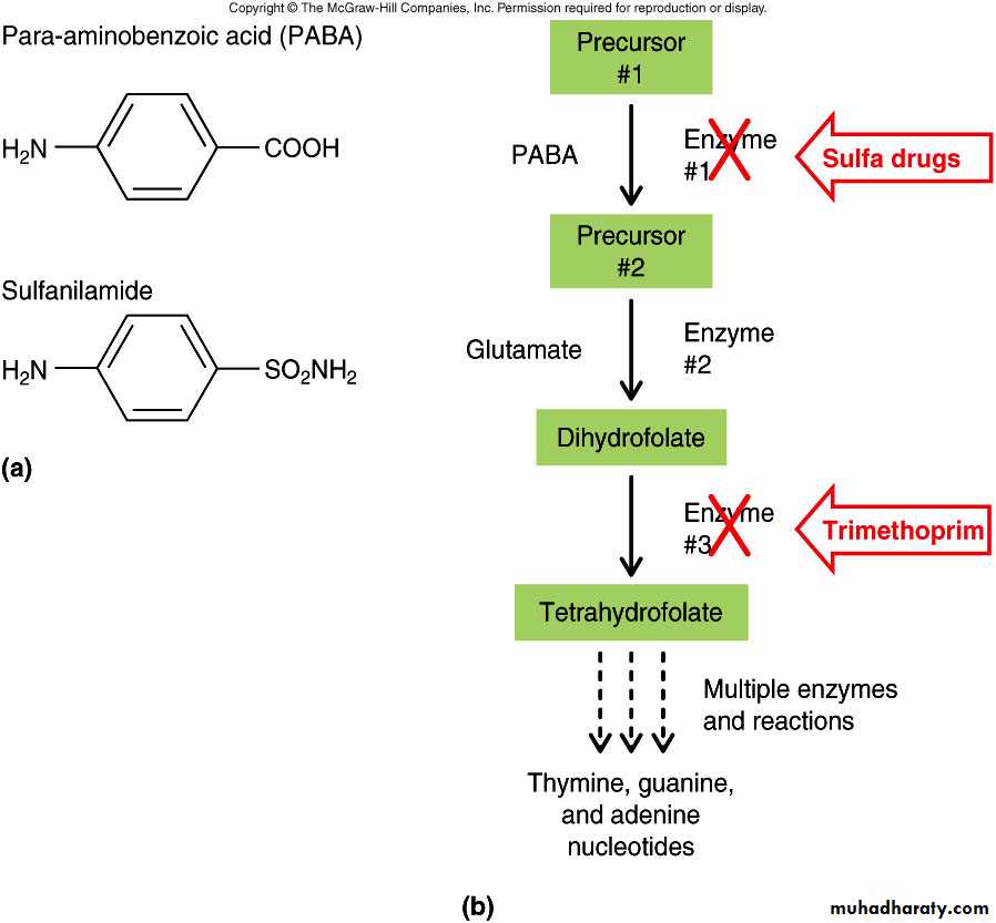 Sulfamethoxazole inhibit incorporation of PABA into folic acid and trimethprim inhibit reduction of dihydrofolate .