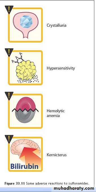 All sulfonamides, have been considered to be partially cross-allergenic.The most common adverse effects are allergy( fever, skin rashes, exfoliative dermatitis).
