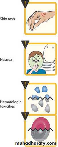 • Hematologic : megaloblastic anemia, leukopenia , thrombocytopenia and it reversed by administration of folic acid.