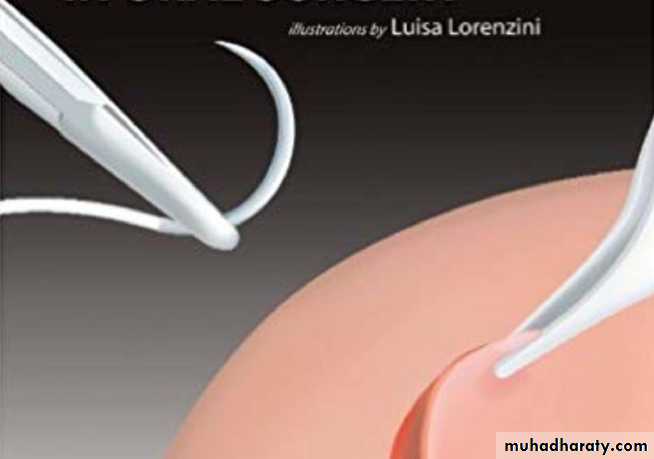 The needle is held with the needle holder, and it should enter the tissues at right angles and be no less than 2 to 3 mm from the incision.