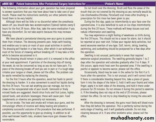 Removal of the Dressing and Return Visitthe periodontal dressing is removed by inserting a curette along the margin and exerting gentle lateral pressure.