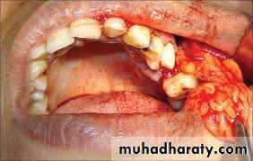 If access to the fat pad has not already been created by the ablative procedure, an incision in the vestibular sulcus distal to the maxillary tuberosity through the periosteum will expose the buccal fat pad