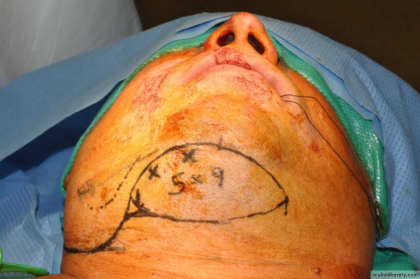 Submental Flap: In 1993, Martin et al. presented the submental flap, a perforator or pedicle cutaneous flap from the submental region based on the submental branch of the facial artery. This flap features good color match, good reach to the anterior mouth and the donor site is directly closed; typically, The skin paddle can reach up to 10 cm by 16 cm, the pedicle reaches up to 5 cm and the platysma muscle, a part of the mylohyoid, as well as the anterior digastricus muscle are included.