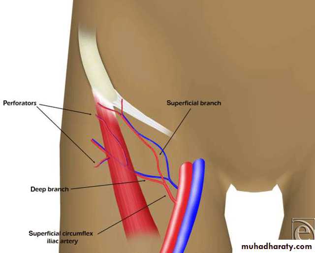 The flap is based on the deep circumflex iliac artery (DCIA), which originates from the external iliac artery and gives off branches into the muscle, bone, and skin.