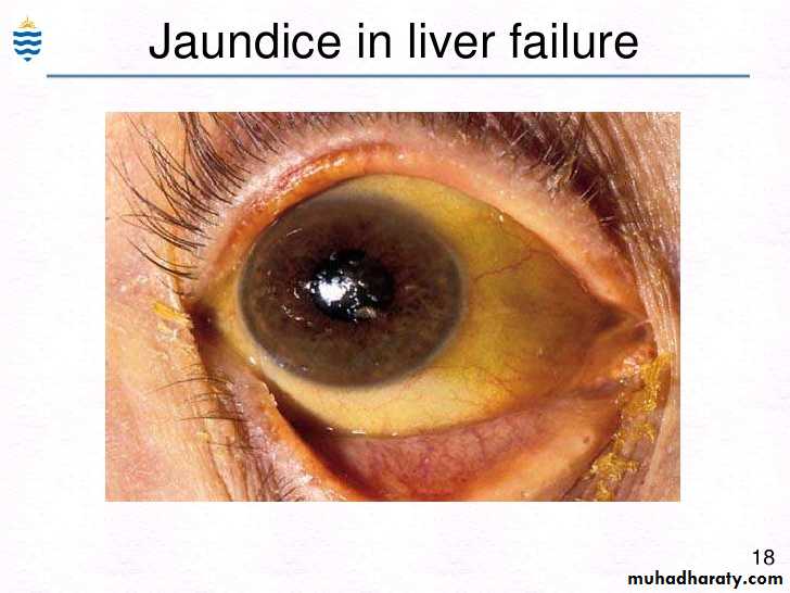 JAUNDICE:.Disequilibrium between bilirubin production and clearance due to one or more of the followings: -excessive production of bilirubin -reduced hepatocytes uptake -impaired conjugation -decreased hepatocellular excretion -impaired bile flow