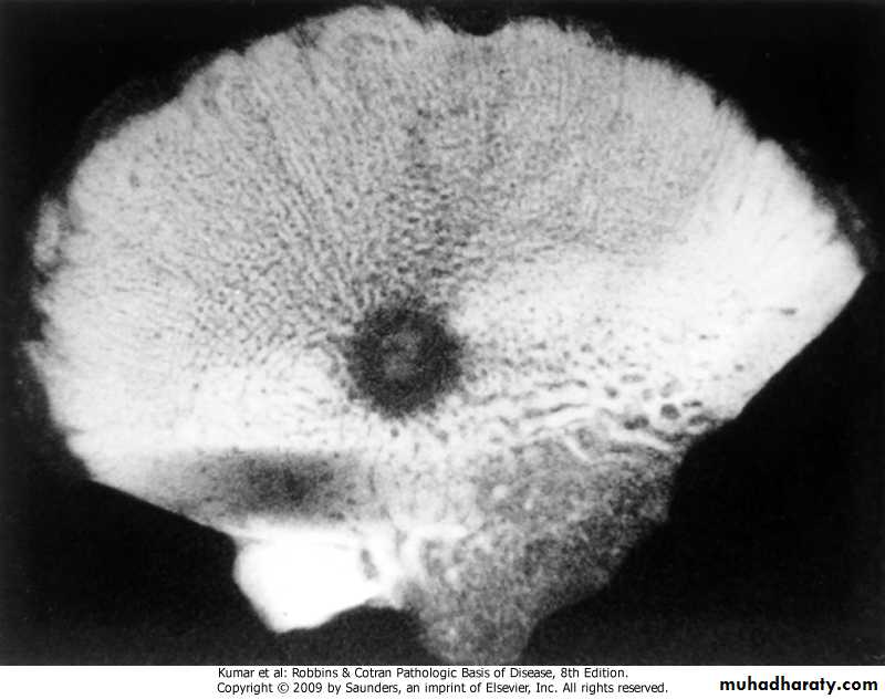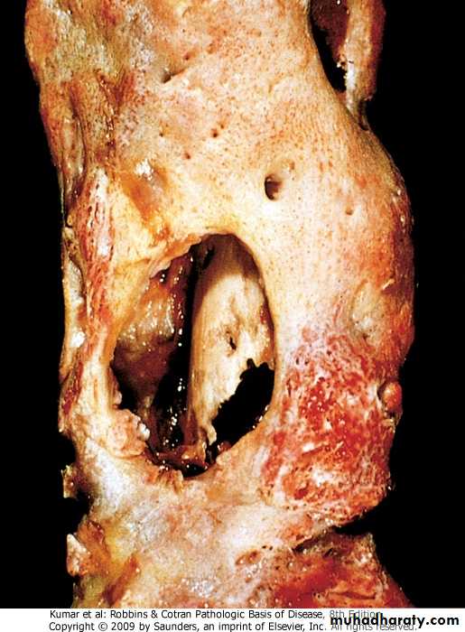 OSTEOMYELITIS: Osteomyelitis denotes inflammation of bone and marrow, virtually always secondary to infection..primary or follow systemic infection - Pyogenic Osteomyelitis: .almost always bacterial, reaching bone via: (1) hematogenous spread (majority) (2) extension from a contiguous site (3) direct implantation after compound fractures or orthopedic procedures. -Changes associated with osteomyelitis depend on: -The stage (acute, sub acute, or chronic) - Location of the infection