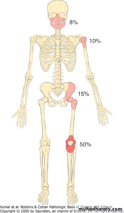 Osteosarcoma, major sites of origin