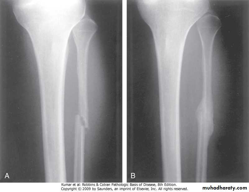 FRACTURES: fracture is defined as loss of bone integrity resulting from mechanical injury and/or diminished bone strength. either complete or incomplete; simple or compound; comminuted (splintered bone); or displaced .complications: -delayed union -nonunionFibula, fracture &callus formation