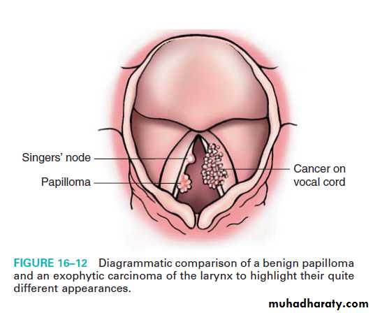 Benign tumors :It includes (vocal cord polyp and laryngeal papilloma).