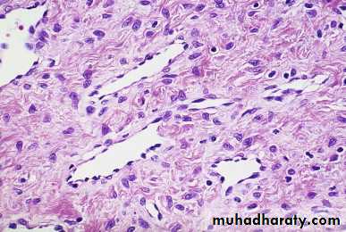 excess use of voice , The vocal cords are diffusely thickened & may show polypoidal mass called laryngeal polyp ( singer’s nodule).