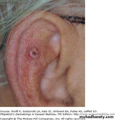 The majority of SCC occurring on the head, neck and upper extremities, present as erythematous scaly papule or noduleWhile melanoma among whites is responsible for 90% of skin cancer deaths before 50 years of age, in adults over 85 years of age, the majority of skin cancer deaths are attributable to SCC.