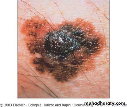 Types of melanomaSuperficial spreading : the most common in fair-skinned persons, on leg of female and trunk of male