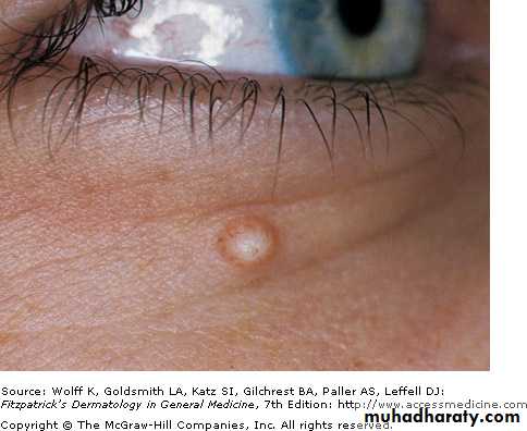 Are small epidermoid cystsPresent as 1–2 mm white to yellow papules