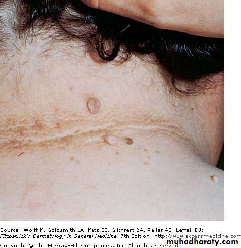 Presents as a soft pedunculated papule, usually asymptomaticPredominantly on the neck, eyelid, axilla and groin