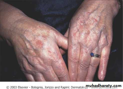Common in caucasian middle-aged individualsCan develop any where except mucosal surfaces and plams and soles