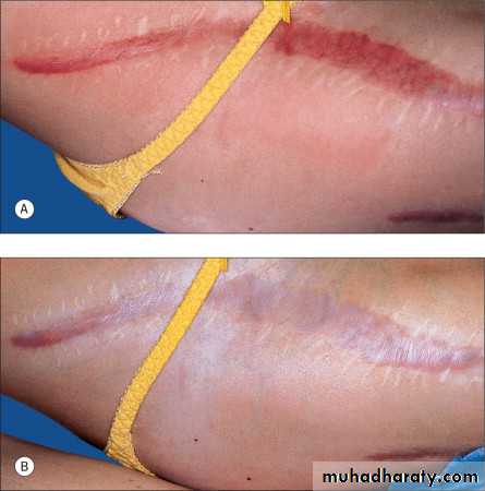 Surgery, intralesional corticosteroids, intralesional 5-Fluorouracil, intralesional interferon, topical silicone gel sheeting and laser