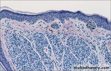 Junctional nevi are a macules. Histologically present with nests of melanocytes at the junction between the epidermis and dermisCompound nevi with nests of melanocytes in both dermis and junction