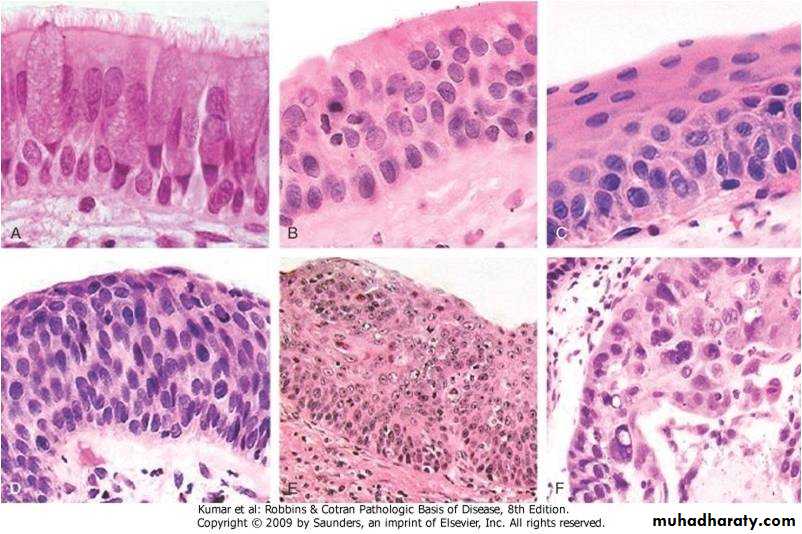 1. Squamous cell carcinoma ; arises from squamous metaplastic epithelium---dysplasia---carcinoma in situ---invasive carcinoma.