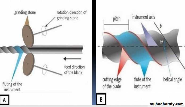 Flutes are grinding out a groove of specific profile in a cylindrical or conical blanck NiTi.Adjoining flutes creat a cutting blade.