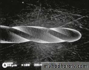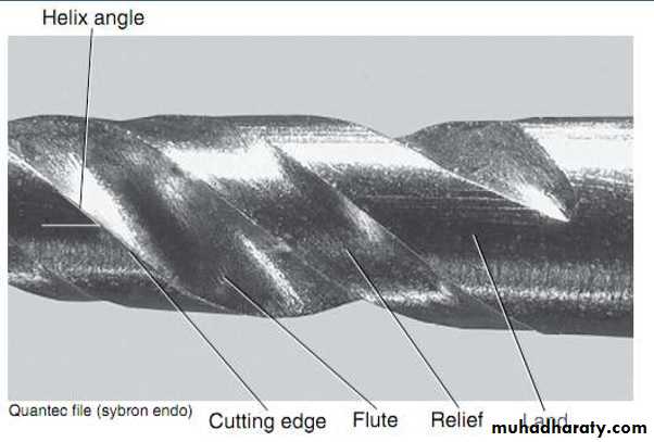 Flute:Groove in the working surface used to collect soft tissue and dentine chips removed from the canal wall.