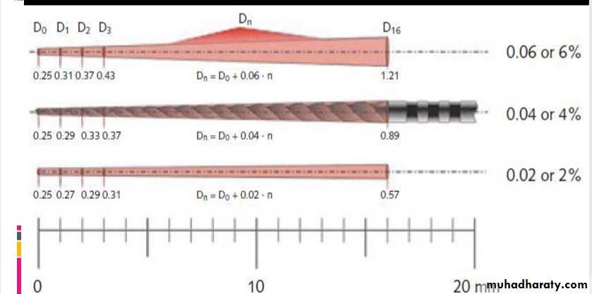 Specifically, for a “large” canal, tapers .10 to .06 should be used, and in a “small” canal, tapers .08 to .04 are recommended.