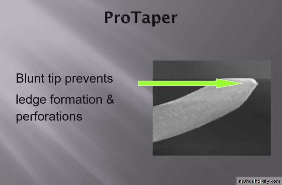 The passive tip reduce the deviation from the canal axisLimits canal perforation of transportation or ledge formation