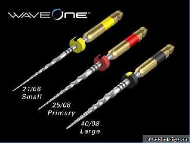 The WaveOne Small file is used in fine canals. The tip size is ISO 21 with a continuous taper of 6 %.The WaveOne Primary file is used in the majority of anals. The tip size is ISO 25 with an apical taper of 8 % that reduces towards the coronal end.