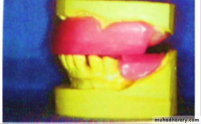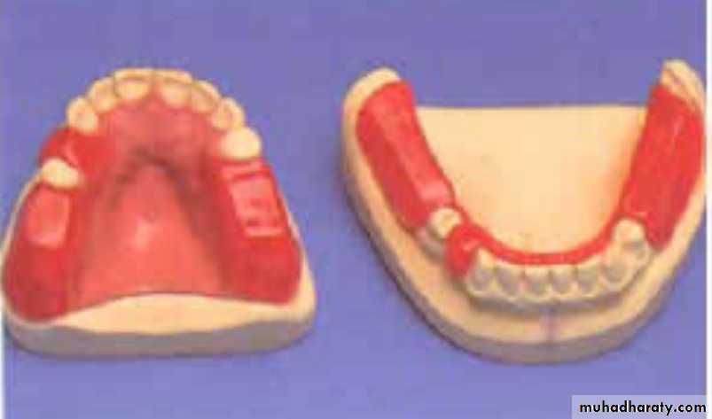 Most commonly used material is medium baseplate wax ,modelling plastic may also be used. They should be so shaped that they represent the lost teeth and supporting structures. It should be centred over the crest of the ridge in cases of lower arch.Methods for taking maxillo mandibular relation ships for partially edentulous patient