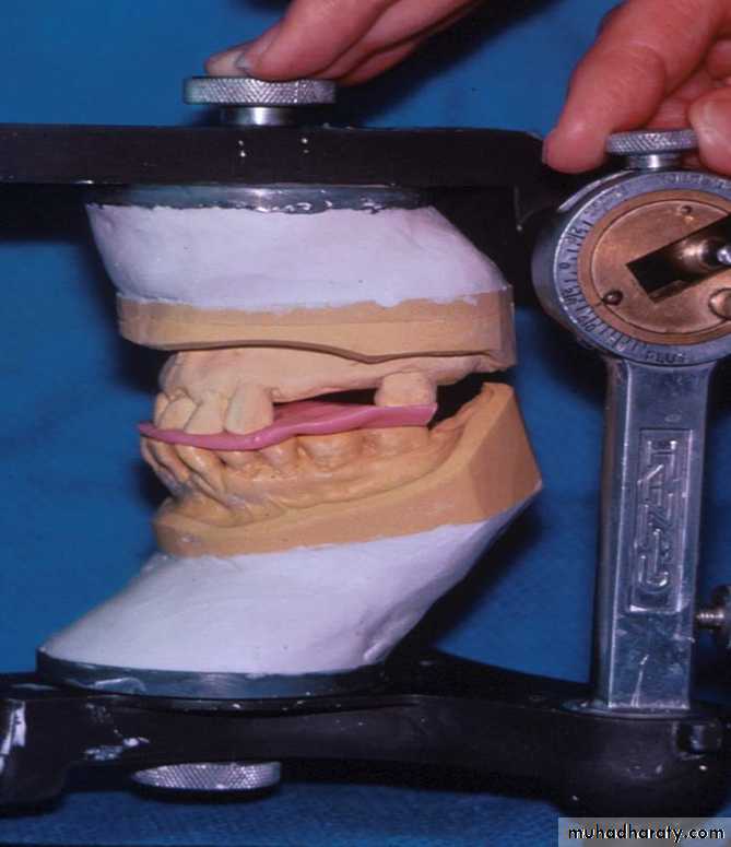 • 3.The occluded casts should be held in apposition with rigid supports with sticky wax to the bases until they are securely mounted in the articulator.