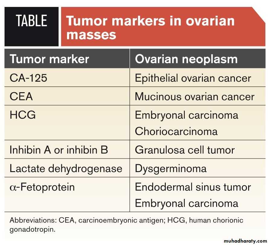 3- Serum CA125 is glycoprotein not produce by normal epithelium but produced by benign and malignant tumor normal value less than 35 ml unit /ml.