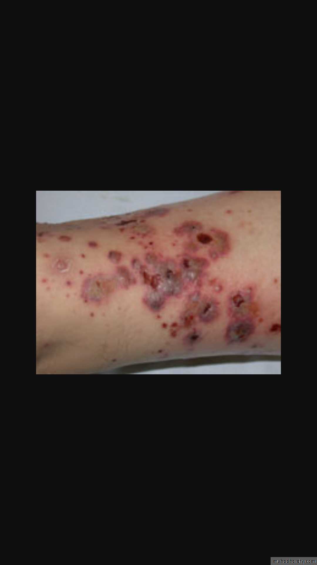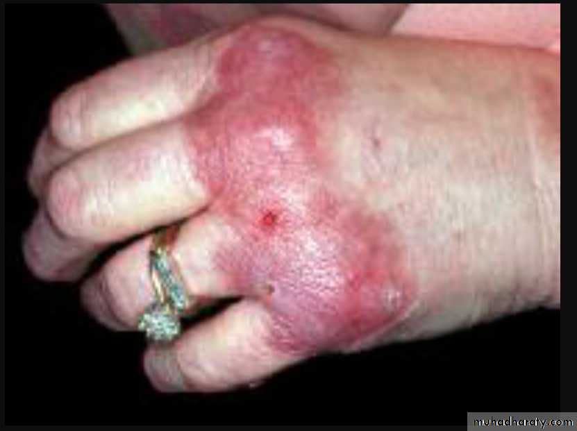 * Skin –subcutaneous hemorrhage and gangrene occur.* Lung involvement is rare.