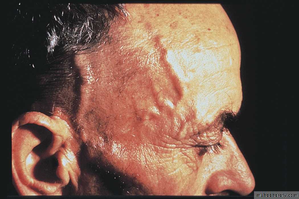 small& medium vessel vasculitis with many extra vascular manifestations. Although any anatomic area can be affected, the three most common sites of involvement are : the sinuses& upper airways, the lungs, & the kidneys.Face Involvement
