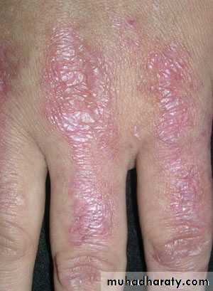 Gottron's papules are violaceous plaques or papules, scaly, erythematosus on the extensor surface of proximal & distal interphalangeal joints.