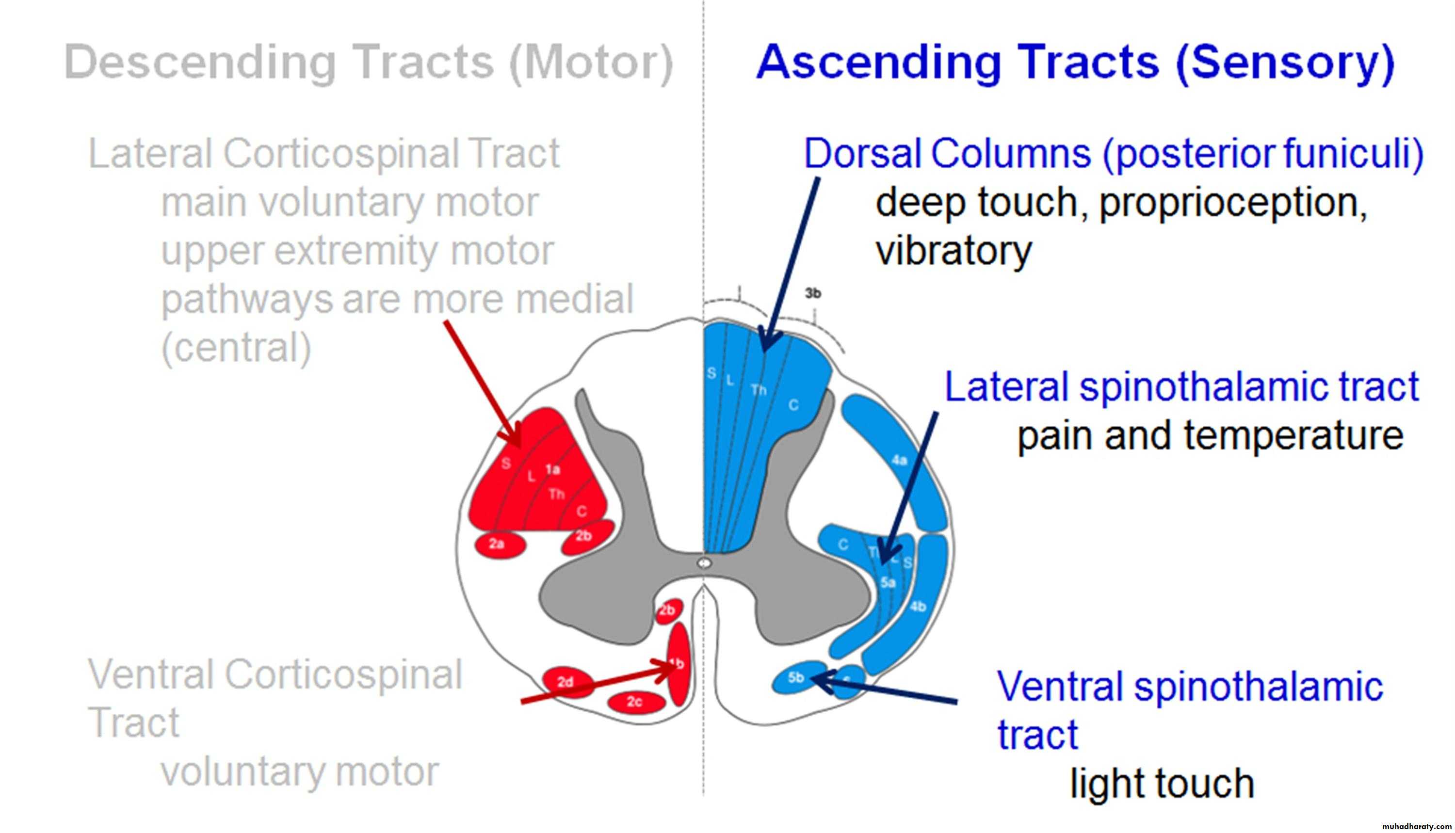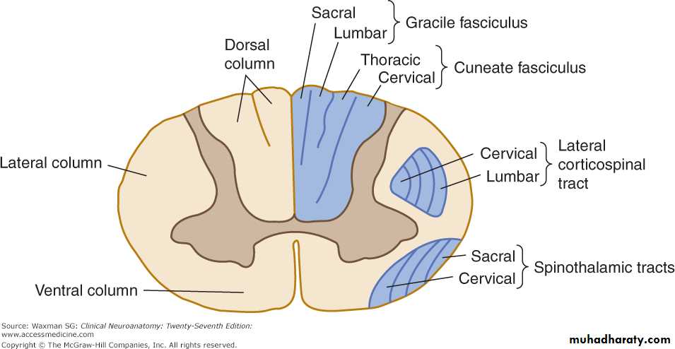 This is important in localization of the lesion,for example, if the pathology is an extrinsic it will affect the sacral fibers first , and if the pathology is intrinsic it will firstly affect the cervical fibers.