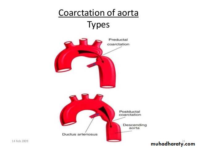 • It is almost always juxtaductal in position.• Occurs as a result of incorrect development of aortic arch near the ductus arteriosus insertion causing narrowing of aortic lumen.
