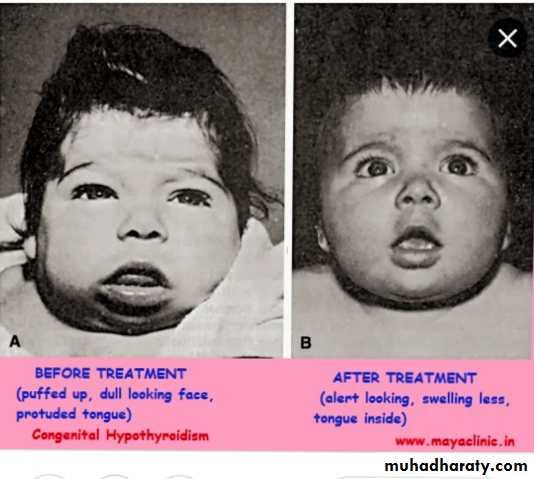 head is round & face is short & broad ,prominent frontal bones eyes somewhat are bulging .mandible and chin are underdeveloped ,delayed teeth eruption and often crowded , short neck and small larynx , high pitch voice which remain high after pubertyEvaluation of suspected growth hor. Def.