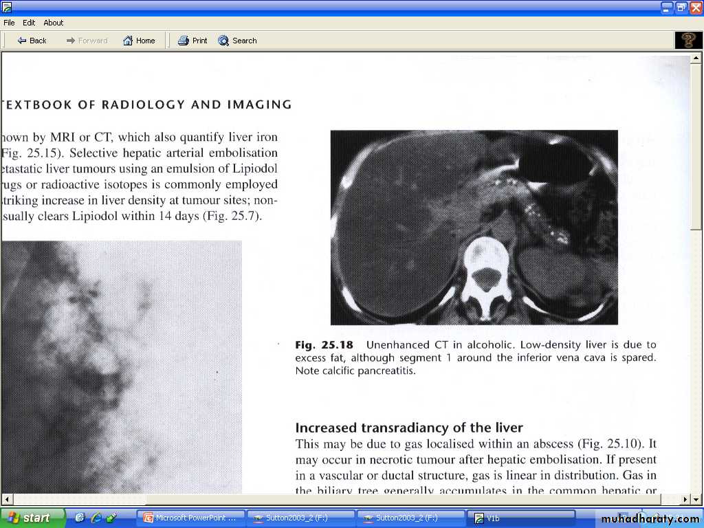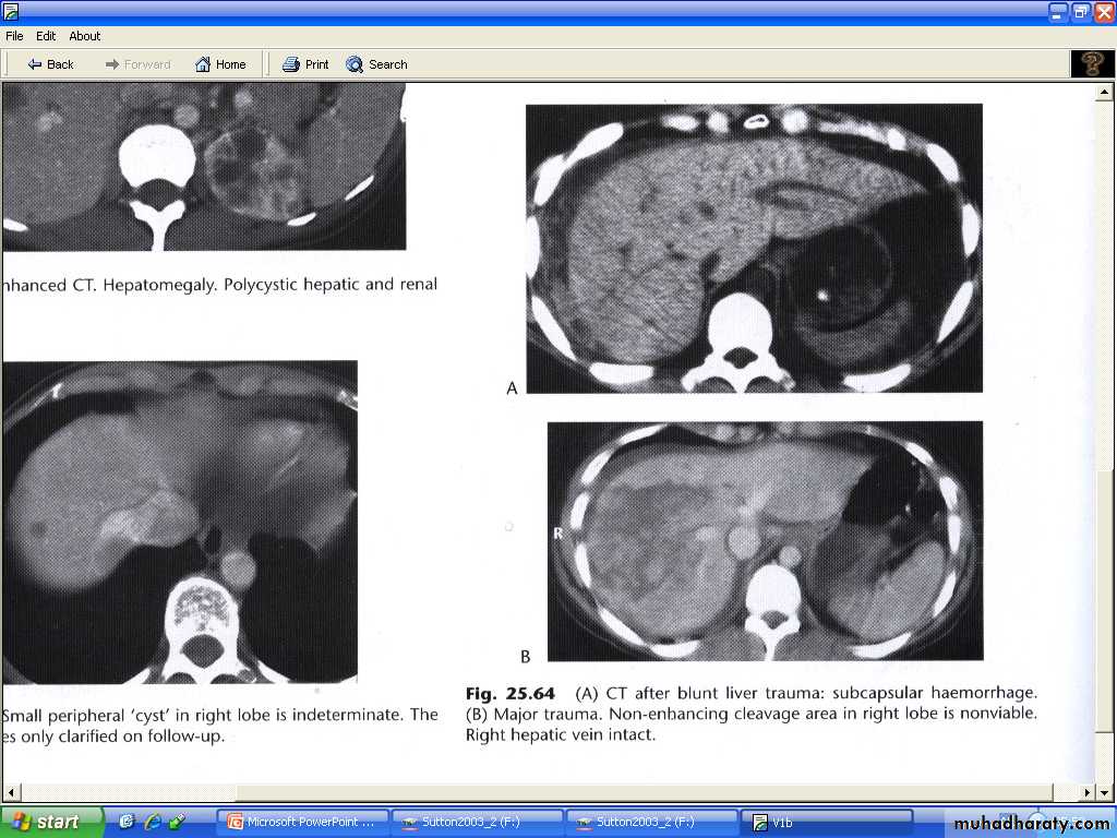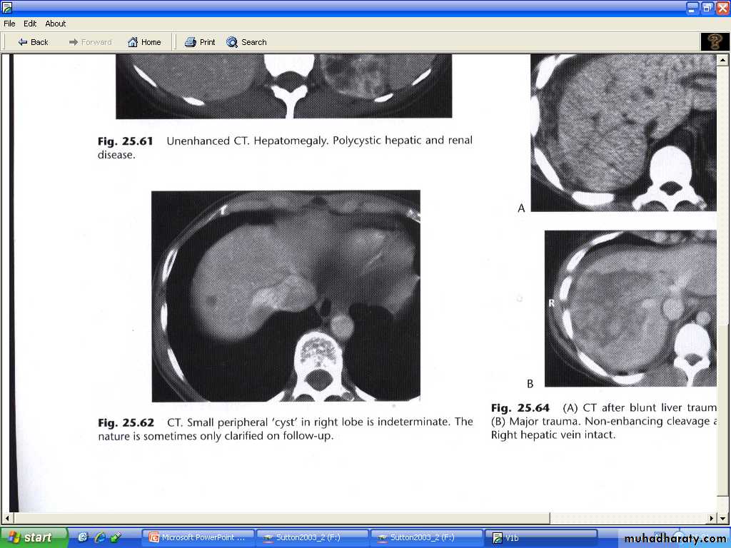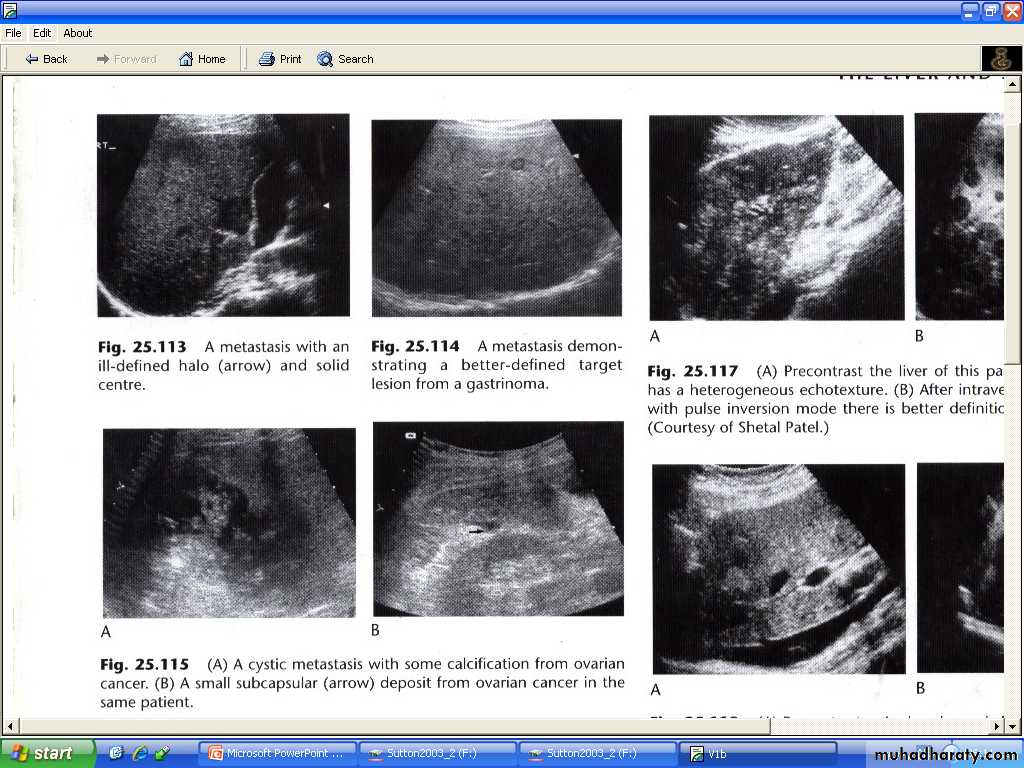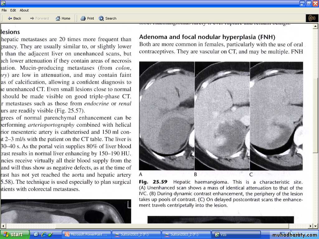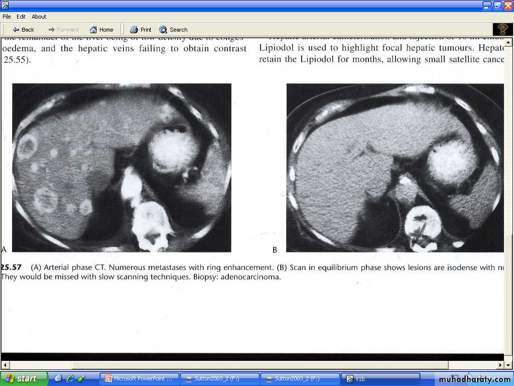 Scanning during arterial phase will shows lesions such as haemangiomas ( has typical enhancement pattern – discuss later ) and highly vascular metastases , as areas of grater enhancement than surrounding parenchyma