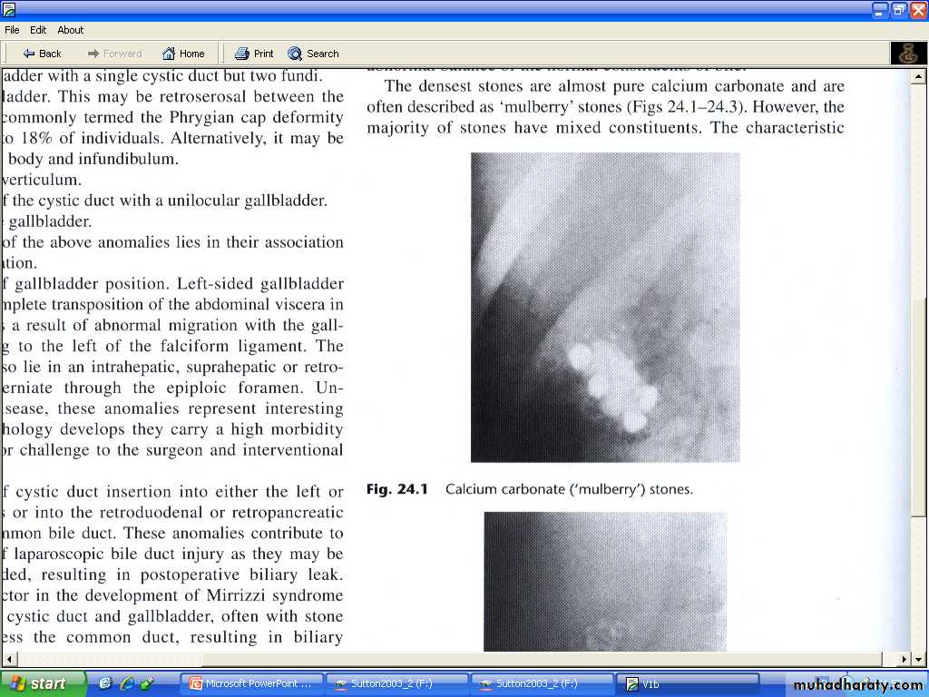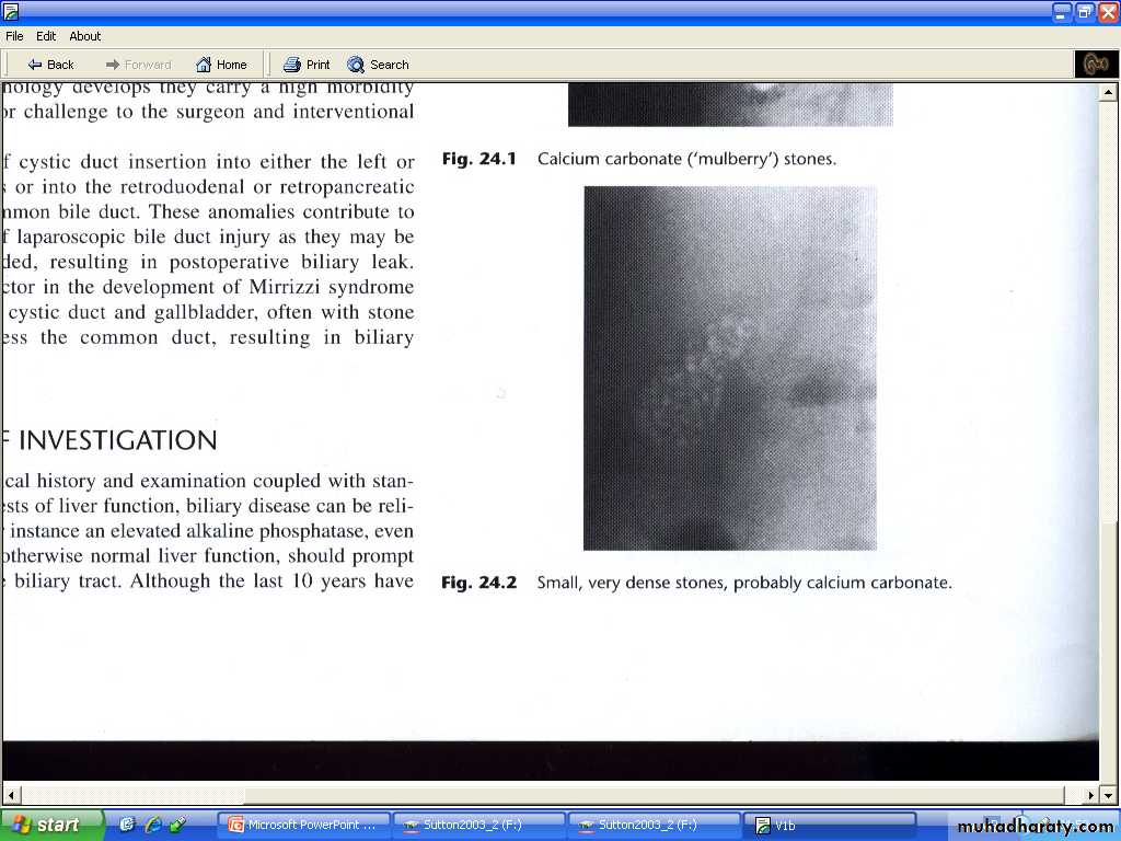 Gall stones are frequent finding in adults , particularly in middle age female. Together with accompanying chronic cholecystitis they are a major cause of recurrent upper abdominal pain .20% of gall stones contain sufficient calcium to be visualized by plain film.