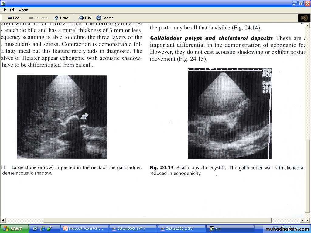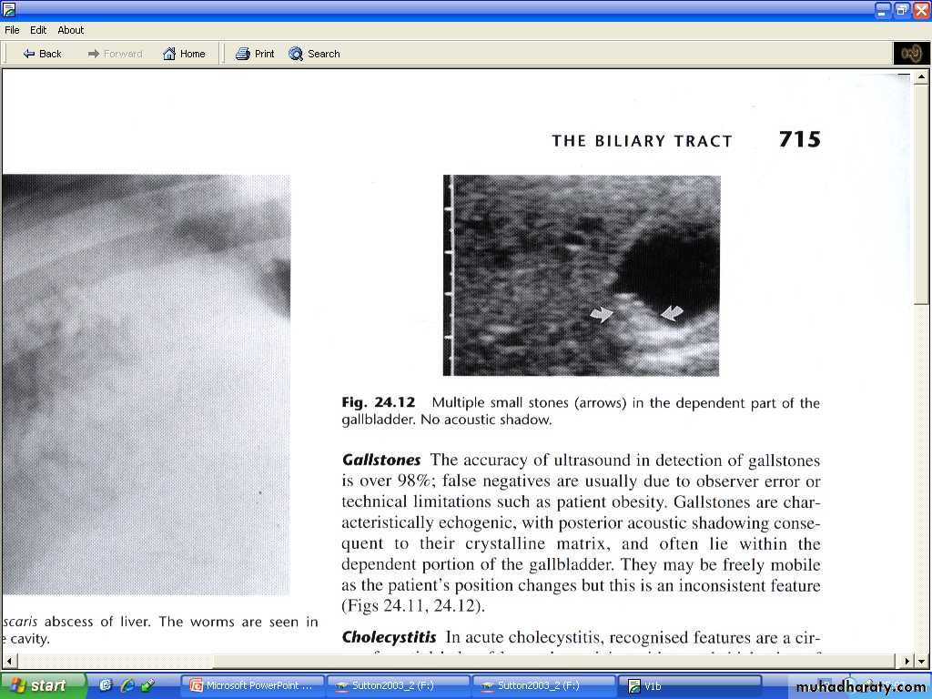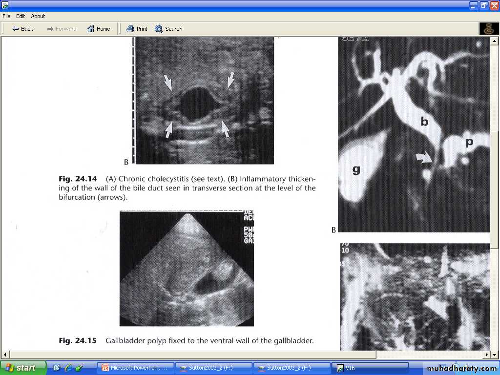 US : is the best and primary method of investigation ,because simplest and excellent method in showing gallstones and diseases of gallbladder also an excellent test for confirming or excluding bile duct dilatation. patient should be fasting 6—8 Hrs prior to procedure to fully distend the GB .